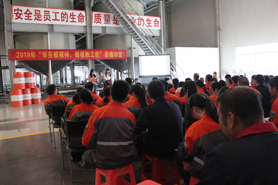 為貫徹落實習近平總書記關于“弘揚勞模精神和工匠精神”的重要指示精神,傳播向上向善正能量,公司黨支部于2018年11月30日在調合車間開展“學勞模精神,做極致工匠”道德講堂活動。